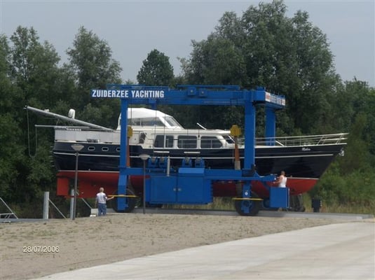 Verder verzorgen wij de winterstalling in onze verwarmde hallen, niet alleen voor Zuiderzee eigenaren maar ook voor derden. Daartoe staat ter beschikking een 40.000 kg zelf rijdende hydro lift en een 40.000 kg heffende zelfrijdende transport wagen voor het naar binnen rijden van Uw schip dat geplaatst is in een zware gekeurde scheepsbok speciaal ontwikkeld voor het vervoer tot 40.000 kg.