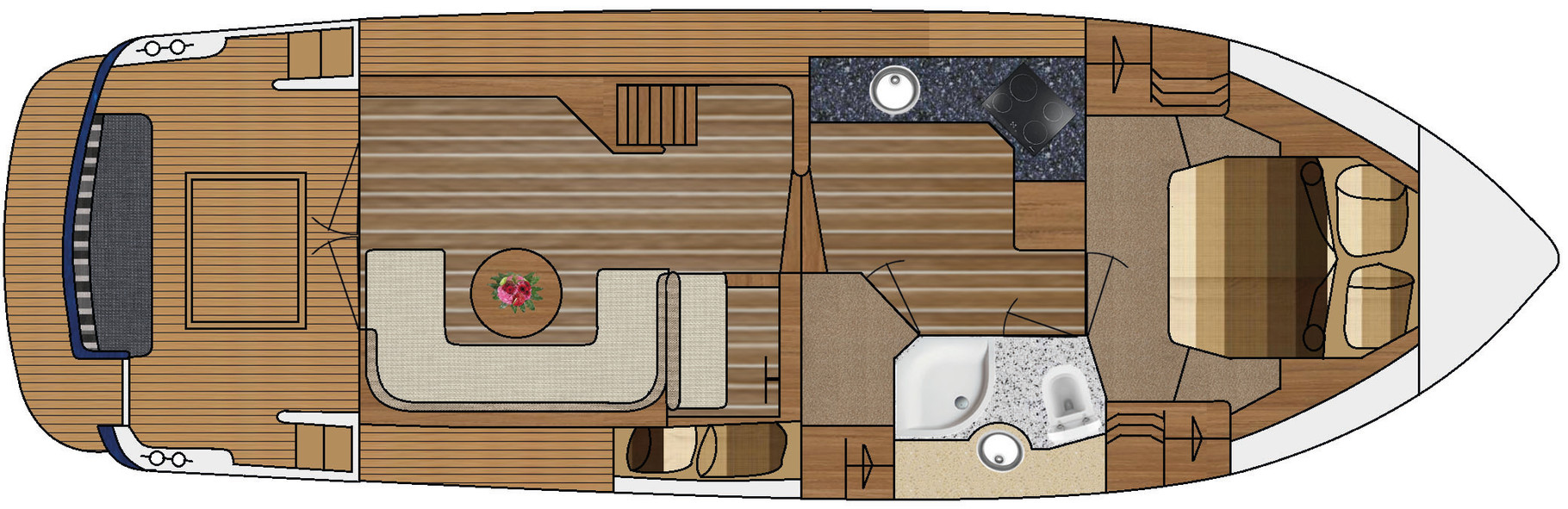 Standaard worden deze schepen geleverd met CE-klasse B en zeer compleet samengesteld. De indeling kan volledig, binnen de maatvoering, naar uw wensen worden ingericht.